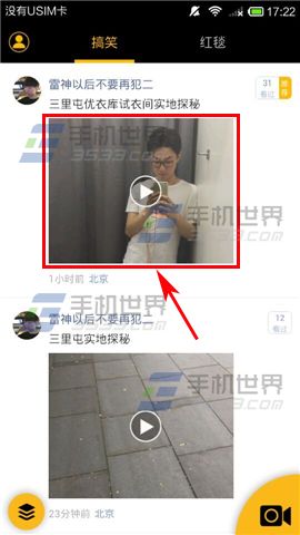 1)打开【趣播】,进入首页后点击一部【视频】。(如下图)