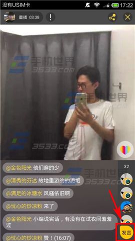 2)进入观看后点击右下角的【发言】按钮,输入文字描述点击【√】即可。(如下图)