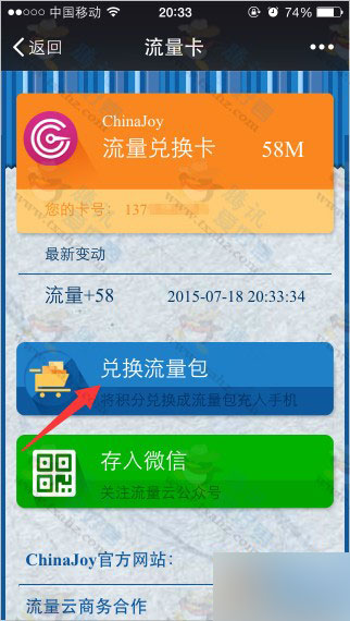 3、然后兑换流量包到手机(移动用户可以兑换1次30M+2次10M;电信直接兑换50M)