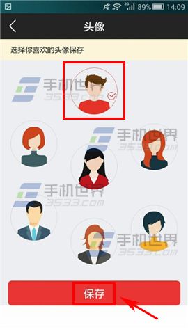 2)点击头像位置处,然后选择一个头像,点击下方的【保存】就可以了。(如下图)