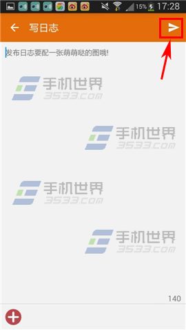 2)在日志页面中点击右上角【铅笔】,编辑好日志内容后点击有上角【飞机】即可。(如下图)