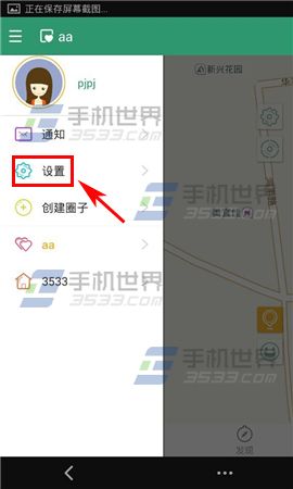 1)打开亲密360进入首页后点击左上角【三】,接着在导航栏中点击【设置】。(如下图)