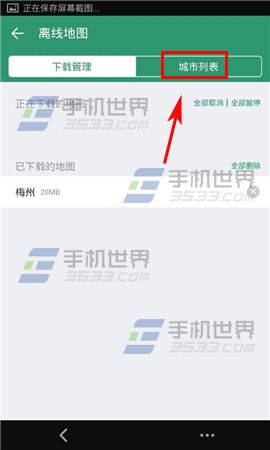 2)在设置页中点击【离线地图】,接着点击【城市列表】。(如下图)
