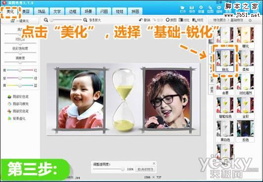 3.点击“美化”,选择“基础”特效里的“锐化”完善图片效果,就大功告成啦!