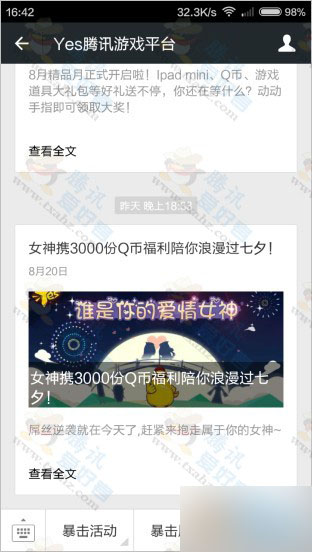 1、微信关注“Yes腾讯游戏平台”点推文(没有就看历史消息)进入活动