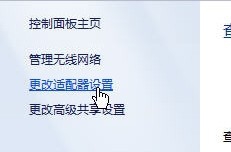 2、在打开的窗口左侧菜单里,点击“更改适配器设置”,