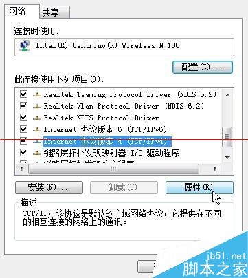 4、在打开的窗口里,选中“(TCP/IPv4)”,点击属性。