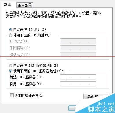 6、现在,我们不用管IP地址,只要修改DNS服务器地址即可,选中“使用下面的DNS服务器地址”选项。