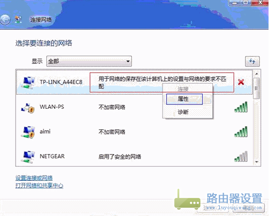 Vista系统,无线连接提示“用于网络的保存在该计算机上的设置与网络的要求不匹配”。