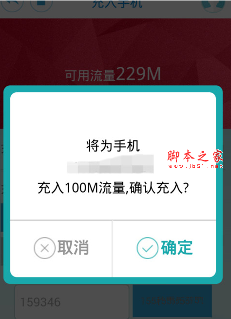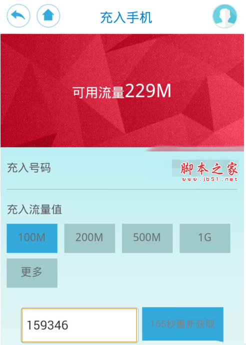 2、点击“充入手机”后我们在这个页面选择充值额度,刚刚也说了最低充值额度100M,然后大家可以在这下面选择,还可以点击更多来选择更多。选择完成我们需要获取一个验证码,最后点击下面的确定按钮进行充值操作。