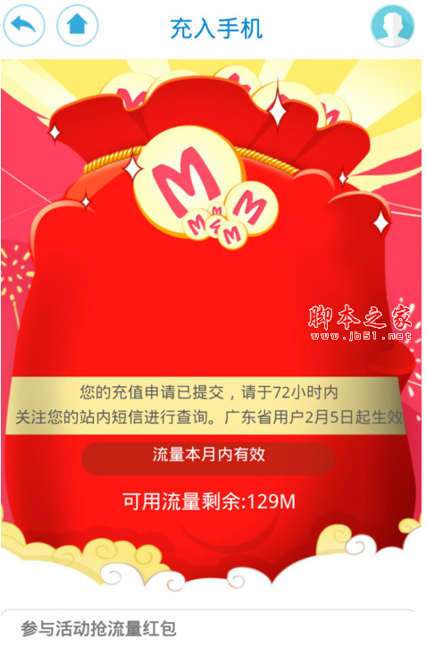 5、接着大家同时也会收到一个充值申请的短信提示,流量到账也会有短信提醒,等到时候提示你充值成功你就可以用了