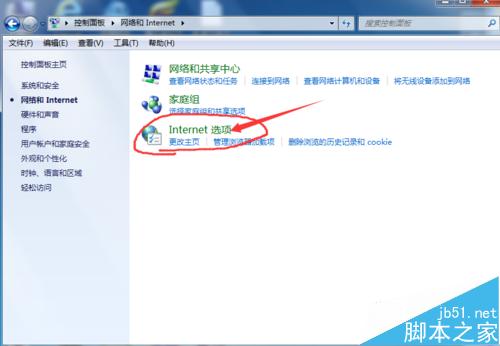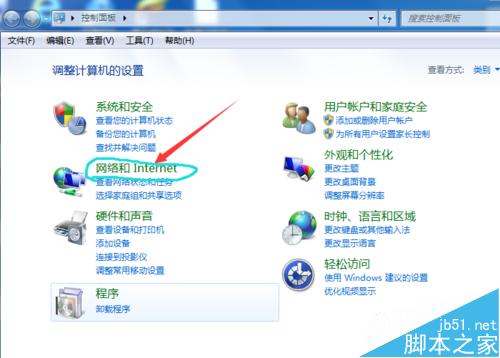 2、点击网络和interest。(点击控制面板之后也有很多选项,把查看方式设置为类别,这样选项会变的少很多就比较容易找了,注意不要点击到网络和interest下面的两个小项。