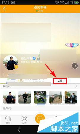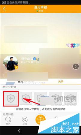 1)打开对面,找到你要守护的TA,进入他的详情页面,点击【关系】,接着在守护者栏点击【+】。(如下图)