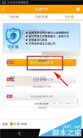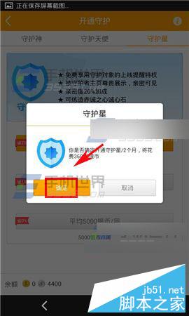 2)点击守护类型,收到花费提醒,点击【确定】即可。(如下图)