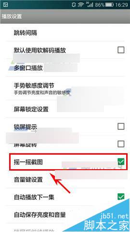 2)点击【播放设置】,勾选【摇一摇截图】就可以了。(如下图)