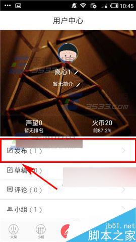1)打开火柴,点击右下角的【我的】然后点击下方的【发布】;(如下图)