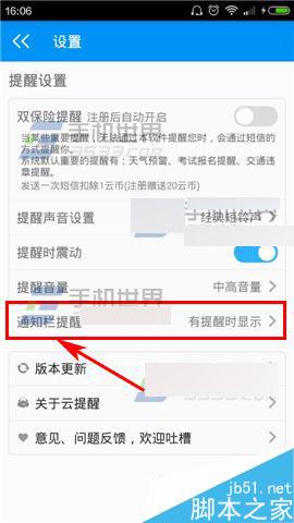 2)点击下方的【通知栏提醒】然后点击下方的你要设置的提醒。(如下图)