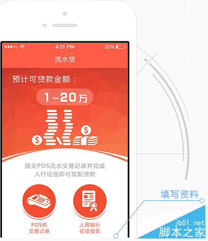 流程简单,在线提交申请,填写pos机交易记录并完成人民银行征信报告即可发起贷款