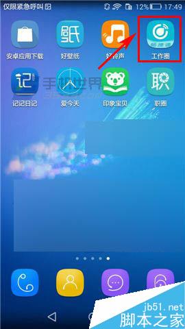 1)点击打开【工作圈】,点击下方的【工作】;(如下图)