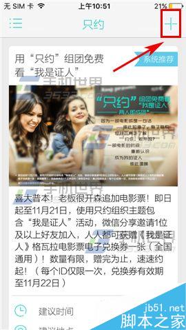 1)打开只约进入应用首页后点击右上角【+】,接着点击【约一下】。(如下图)