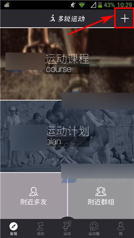 1)打开多锐运动,点击右上角的【+】,然后点击【发起约跑】;(如下图)