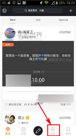 1)点击打开【高朋汇】,点击下方的【消息】;(如下图)