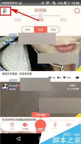 1)打开易直播,点击左上角的【头像】,然后点击右上角的【按钮】;(如下图)
