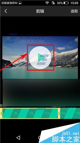 3)点击下方中间的按钮,选取视频时间,然后点击右上角的【选取】;(如下图)