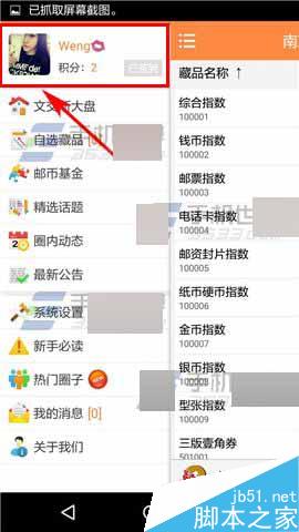 1)打开邮币圈,点击左上角的【三横】,然后点击上方的【头像】;(如下图)