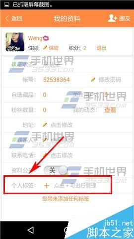 2)点击下方的【个人标签】,然后点击下方要添加的标签即可。(如下图)