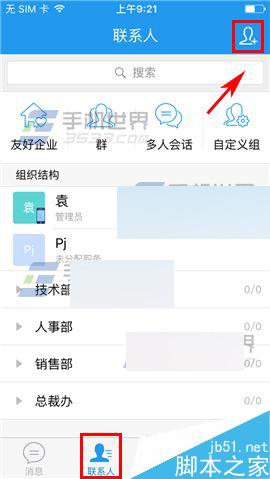 1)打开今目标进入软件后点击下方导航栏【联系人】,接着点击右上角【人头像】,点击【部门管理】。(如下图)