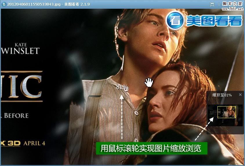 在美图看看大图浏览窗口下,默认情况下当我们拨动鼠标滚轮时可以放大缩小图片,实现非常方便的图片缩放浏览操作,如图01所示。同时,在浏览窗口中单击鼠标左键拖动,即可实现图片位置的随意移动,这对于浏览超大尺寸的图片或漫画来说,会很有益处;因为这样就可以拖动图片把每一个细节都看清楚。