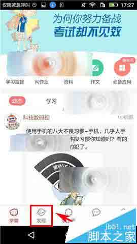1)点击打开【我要当学霸】,点击下方的【发现】;(如下图)