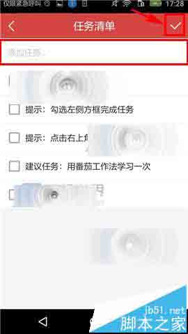 2)点击上方的【任务】,然后点击下方的编辑框输入任务内容,最后点击右上角的【按钮】即可。(如下图)