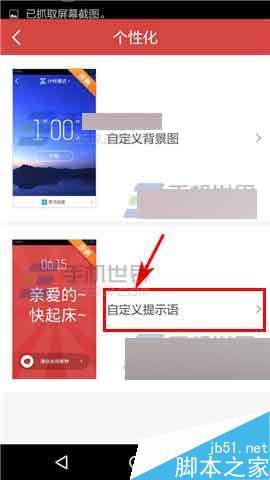 2)点击下方的【自定义提示语】,然后点击选择要设置提示语的提醒;(如下图)