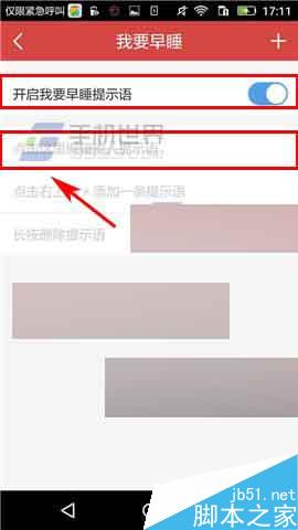 3)点击【开启我要早睡提示语】旁边的【按钮】,然后点击下方的编辑框,然后点击编辑款输入提示语,最后点击右上角的【按钮】即可。(如下图)