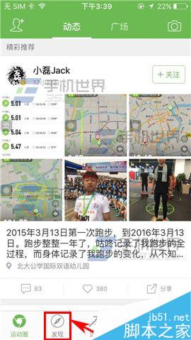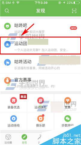 1)打开咕咚,点击下方的【【发现】,然后点击【运动团】;(如下图)