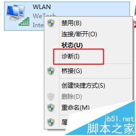 4、WLAN上会有红色×的标志(因为我已经修复完成才写的经验,所以没有截图),右击WLAN点击诊断,机器会自动为你修复相关的问题,然后就可以显示无线并连接了。反正我的问题是这样解决的,希望能帮到你。
