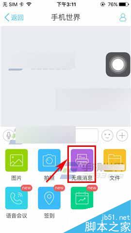 3)点击【无痕消息】,接着点击编辑框输入消息内容发送即可。(如下图)