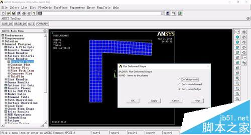 5、mian menu--general postproc--polt result--deformed选择数据类型为ALL item,点击 ... 的图标,选择该模型的rst文件,点击OK