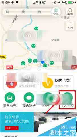 1)打开喂车车,点击下方的【按钮】,接着点击【个人中心】;(如下图)