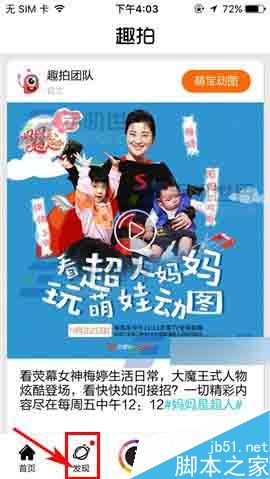 1)打开趣拍,点击下方的【发现】,接着点击打开要屏蔽的好友;(如下图)