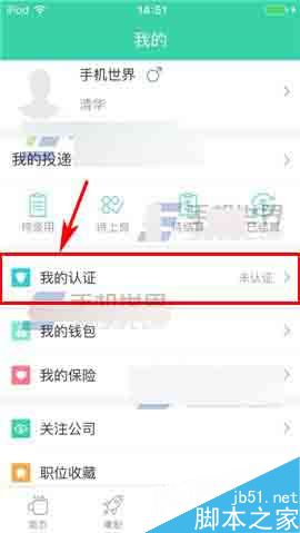 1)打开e兼职,点击右下角的【我】,接着点击【我的认证】;(如下图)