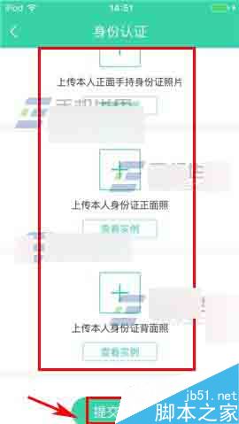 2)点击上传身份证照片,最后点击【提交审核】即可。(如下图)
