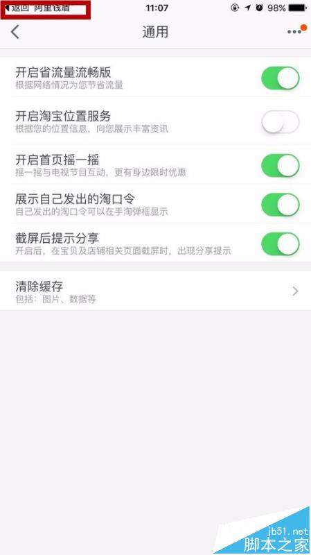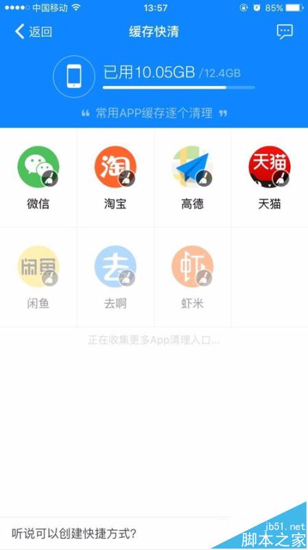 6、清理完成后,可点击左上角,就会返回到阿里钱盾的缓存快清界面,可对下个软件进行清理
