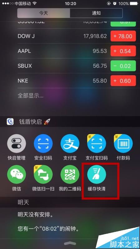 7、有一种快捷打开缓存快清的清理界面,可开启钱盾快启,在下拉通知栏中添加,之后想要使用,一键点击,就可直达
