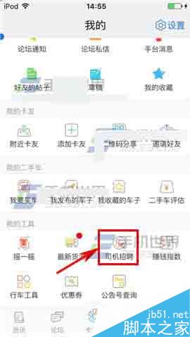 1)打开卡车之家,点击右下角的【我的】,接着点击【司机招聘】;(如下图)