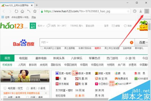 2、在打开的浏览器界面,点击右上角的“菜单图标”按钮。如图所示;