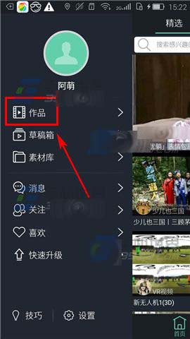 1)打开看拍,点击屏幕左上角的【个人】图标,进入【作品】;(如下图)