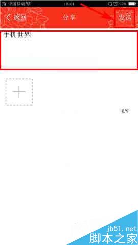 2)点击右上角的【按钮】,然后点击编辑框输入想说的话,最后点击右上角的【发送】即可。(如下图)